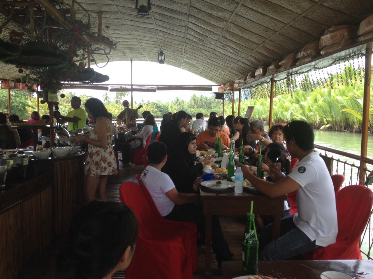 ビュッフェ形式で、揚げ物、パンシット(やきそば)、フルーツ(パイナップル)などありました。