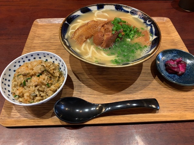 沖縄そばが食べたくて来店。民家をリフォームした店ですが、内装は至ってシンプルです。レンタカーを利用する観光客でなければ中々行けない場所かもしれませんが、とんこつベースの沖縄そばはかりゆしウェアを着たビジネスマン達にも人気。ジューシーも美味しいので是非一緒に食べてみてください。