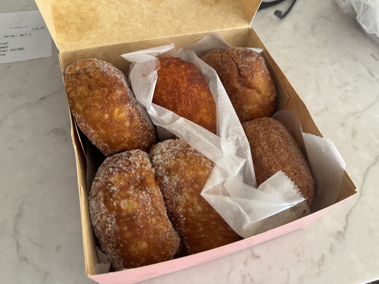 ハワイの定番スイーツ【マラサダ】。ドーナッツ好きにお勧めしたい商品ですが、ズッシリ感のある沖縄のアンダギーよりも軽いので、朝食にマラサダを食べるというのも大いにアリだと思います。尤もアメリカ人は朝からドーナッツを食べますので、彼らにとっては大いにアリどころか当たり前。レナーズのマラサダは色々な味がありますが、1つだけ選ぶとしたらやはりお店の人気No.1商品のオリジナルが良いでしょう。本店は混雑していますので、待つのが嫌いだという人にはワイケレセンターのフードトラックがお勧めです。