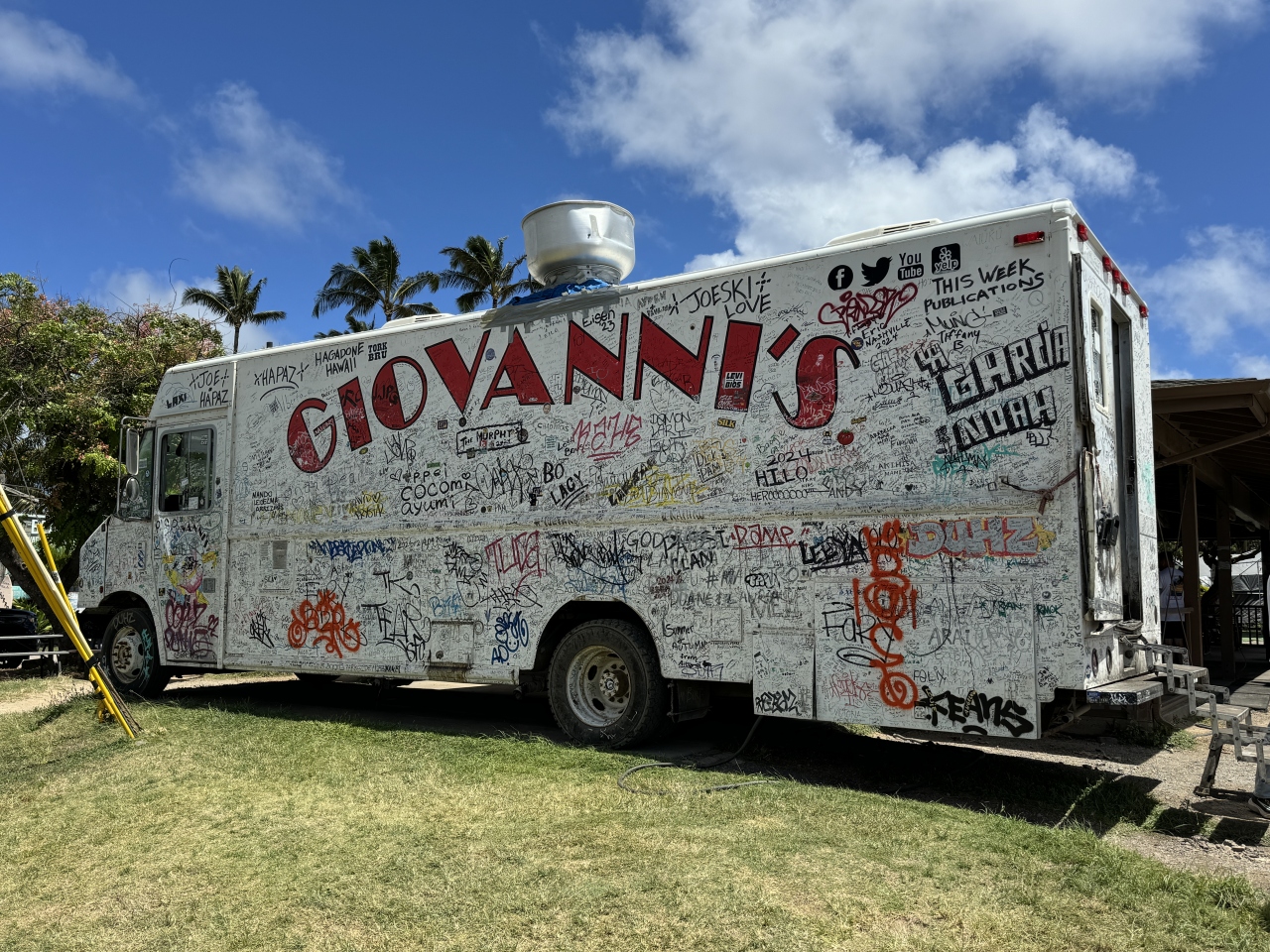 今回私はジョバンニのカカアコ店とカフク店を利用しましたが、ハワイらしい雰囲気を味わいたいのであればカフク店がお勧め。ジョバンニだけでなく他のフードトラックも並んでいますから、ガーリックシュリンプ以外の食べ物や買い物も楽しむことができます。