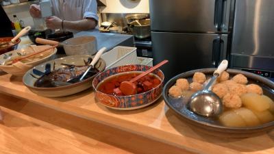 私たちが訪れたのは平日でしたので、予約無しでも入店できました。『地酒とおばんざい はなと』は、とても気さくな大将がいるお店。カウンターに座ると、おばんざいを見ながら食事を楽しむことができます。烏丸御池駅から歩いて5分くらいの所にある和食処。お腹いっぱい、そしてほろ酔い気分でホテルに戻った私たちでした。