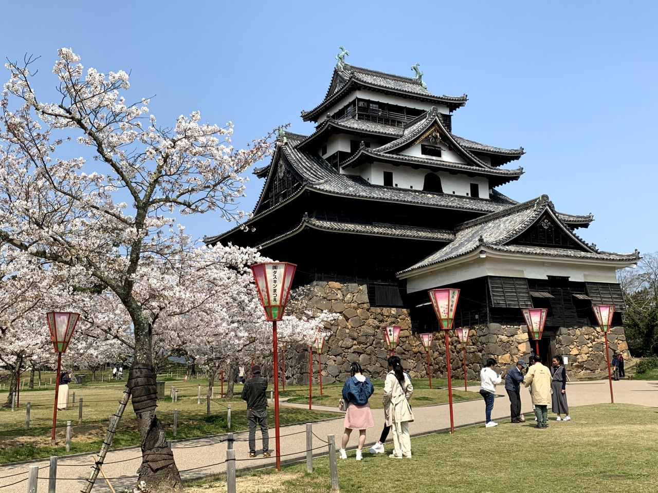 松江城は国宝5城のひとつ。私たちが訪れた時は桜が満開でした。淡いピンクの桜と黒い松江城。そのコントラストがとても見事でしたよ。今は新型コロナウイルスの影響で観光客が激減していますが、来年はビジネスではなくプライベートで訪れたいと思います。