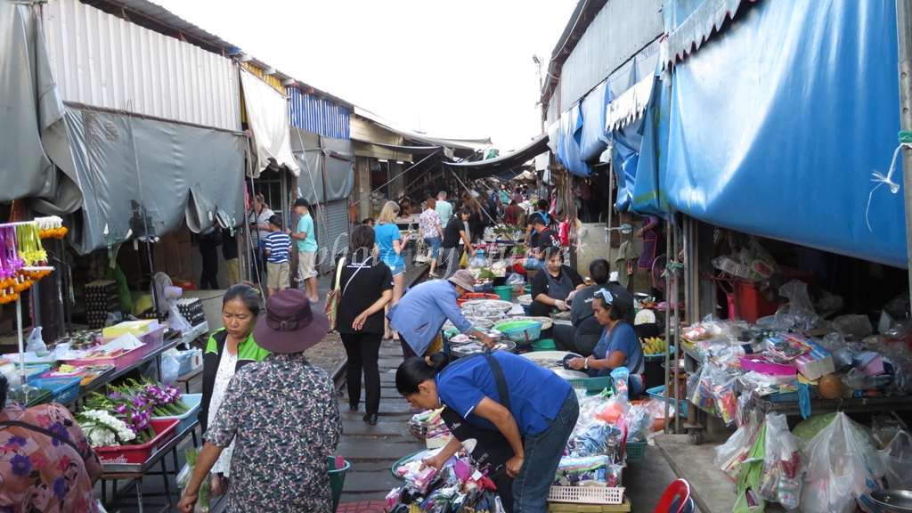 スリル感がたまらないと聞いていた鉄道マーケット。線路脇にずらりと並んだお店からは、線路を覆うように庇が延びています。またレールの上にも商品が置かれ、これで本当に列車が来るのかと疑っていましたが、この線路は現役だったのですね。まさかのまさか…でした。5ッ星間違いなしのマーケットです。