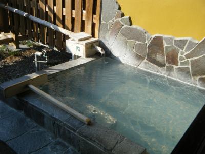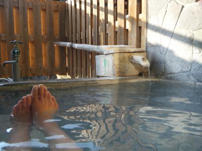 お宿に到着〜。奮発して、露天風呂付き離れのお部屋にしました。青湯で有名...