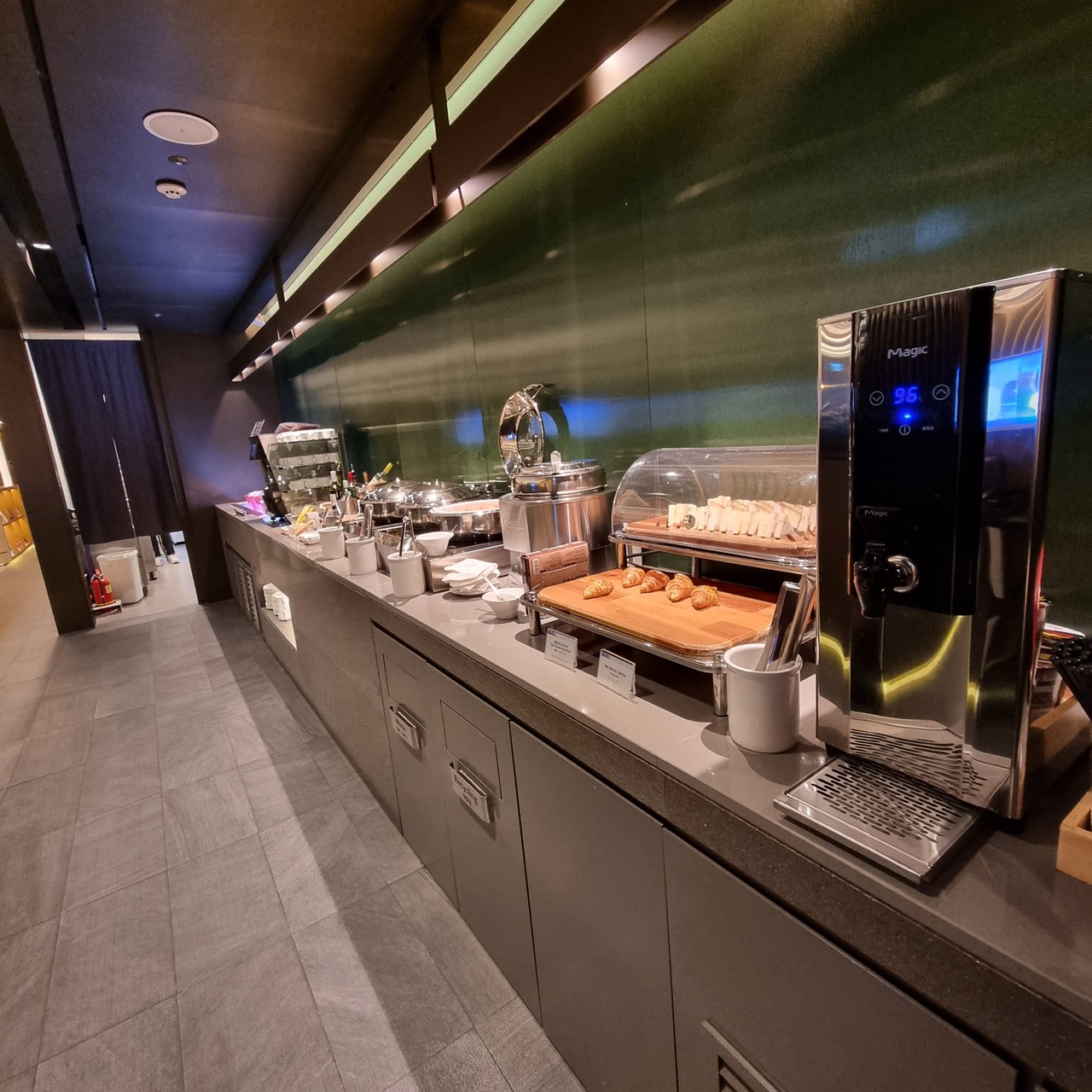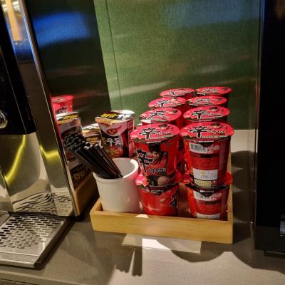 出国審査後のエリアに入って一番左端に行くとあります。すぐ横には大韓航空のラウンジ。広さはあまり広くなく、食べ物や飲み物も仁川空港に比べて種類が少ないですが、コンパクトで使いやすいので個人的には気に入っています。いつか辛ラーメンを食べてみたいのですが機会がなかなかありません^^;