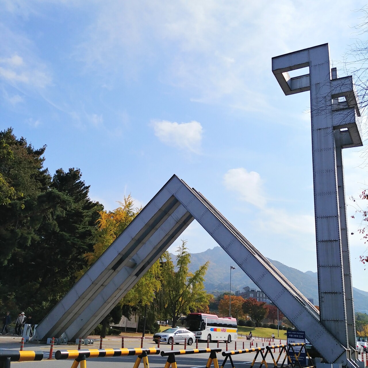 韓国の名門、ソウル大学。入り口のモニュメントが特徴的です。