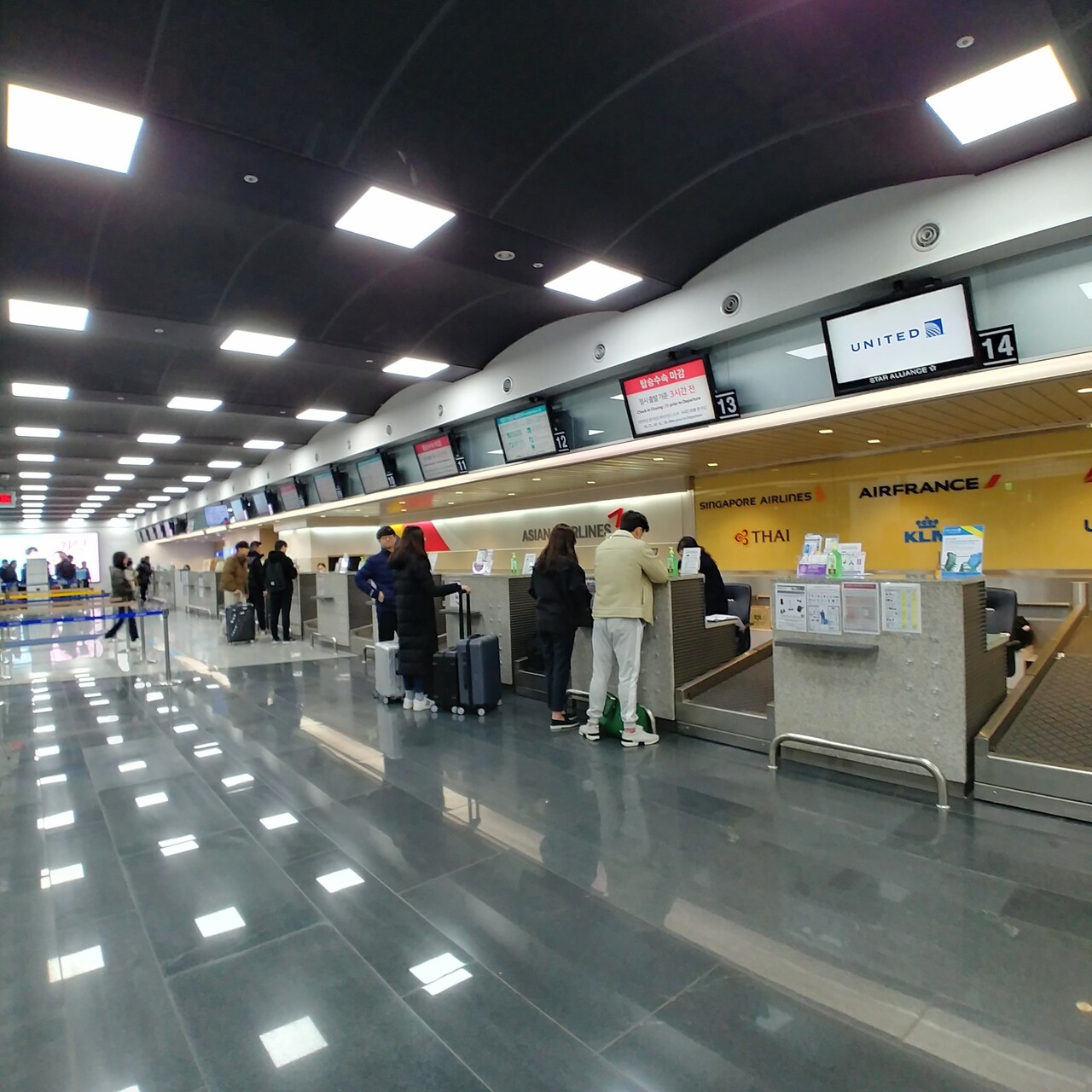 ただし、利用できる航空会社が限定されており、ANAは対象外です。また、大韓航空とアシアナはカウンターが多いですが、その他の航空会社はカウンターが1つずつなので、運が悪いと時間がかかる場合があります。私はタイ航空を利用しましたが、運悪く前の家族が荷物を10個ぐらい預けていて、だいぶ待たされました^^;