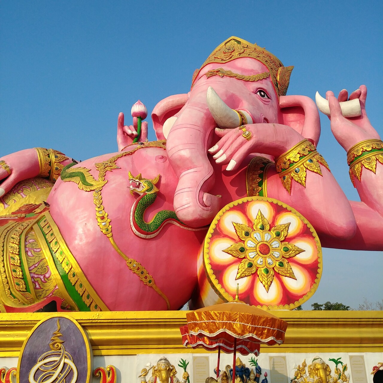 バンコク市内から離れているため、現地の半日ツアーを利用して行ってきました。車で1時間半ほどかかります。人気のピンクのガネーシャは、鮮やかで迫力があり良かったです!