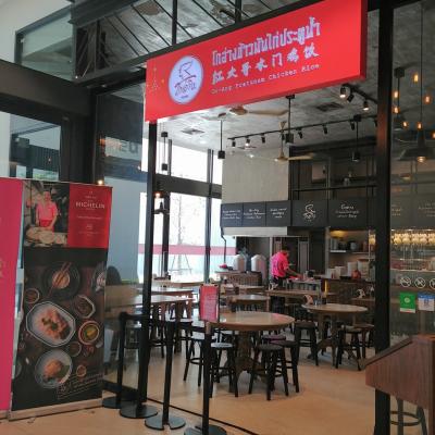 有名なピンクのカオマンガイ屋さん。月曜日の朝に本店に行ったら、夕方からの営業という張り紙が...^^; なので、急遽支店の方に行きました。支店も近くにあり、歩いて5分くらいです。THE MARKETというショッピングセンターの1階にあり、お洒落で綺麗な店内です。入るとすぐに日本語メニューを持ってきてくれ、紙に記入する形で注文。有名なカオマンガイは、チキンもライスもスープも美味しかった!ソースをつけるとまた違った美味しさでした^^