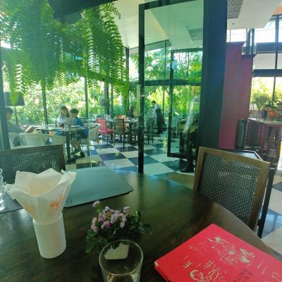 朝食はロビーの奥でセルフサービスです。シンプルですが、美味しかったです。テラスもあります。飲み物とクッキーなどは、深夜以外は常に用意されていて、けっこう助かりました。- 旅行時期