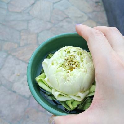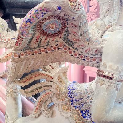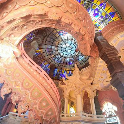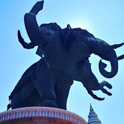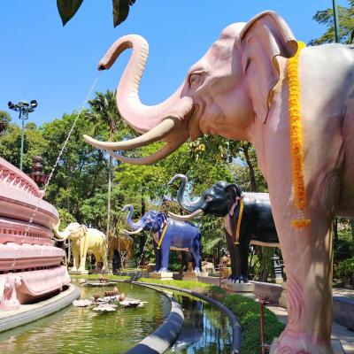GrabとBTSを利用して行ってきました。入場料金は外国人料金で400バーツ。ちょっと高いですが、個人的には気に入った内容だったので良しとします^^ ランドマークである巨大な象と内部のステンドグラス、螺旋階段の繊細な飾りなど、見所が多かったです。周りのパオーンと鳴き声が出る象たちも面白かったです。花も入場料に含まれるということだったので、貰って水路に流しました。
