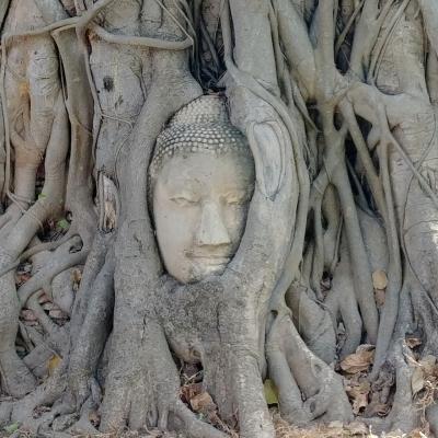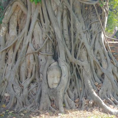 アユタヤの1日ツアーの中で行きました。木に包まれた仏頭が有名ですが、実際に見ると本当に神秘的です。仏頭と一緒に写真を撮る場合には、座って撮影しなければなりません(仏頭より頭が高くなってしまうため)。そこらじゅうに頭の部分を切られた仏像があり、戦争の生々しさを感じました。