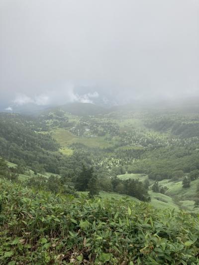 向こうに見えるスキー場志賀高原のサンバレースキー場です。