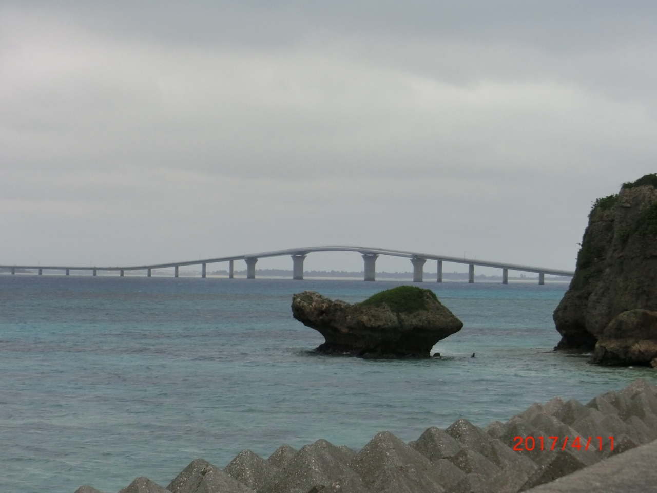 手前に海亀に似た岩があり、伊良部大橋といい景観を作っていました。- 旅行時期