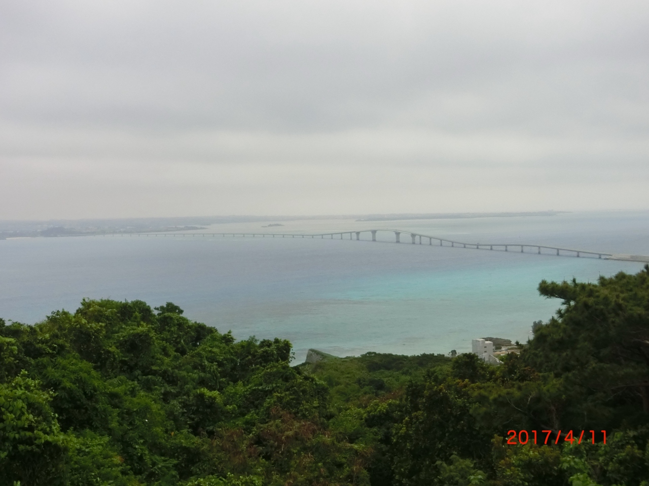 伊良部大橋開通記念碑の道路の反対側から伊良部大橋を見て見ました。