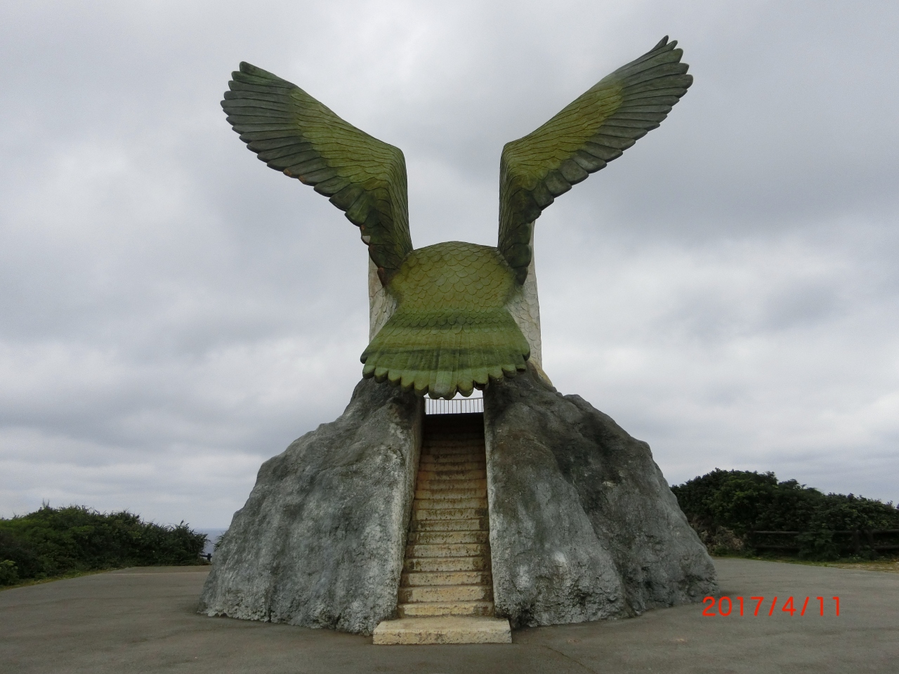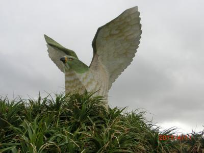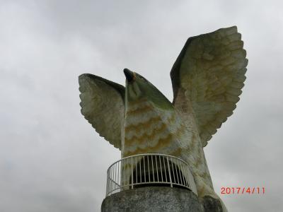 展望台の前に回って見上げると、大きな鳥が翔び立とうとしている。