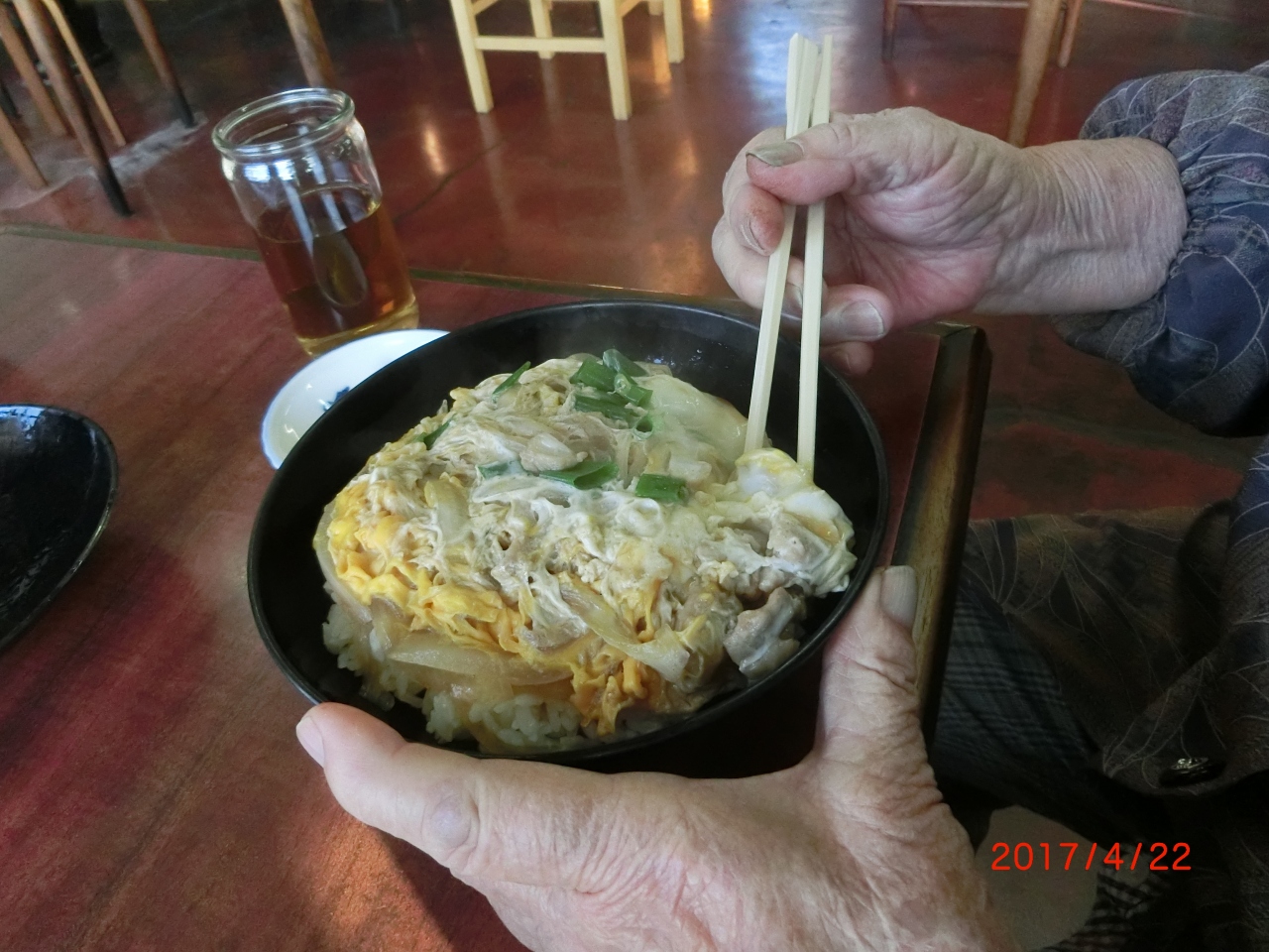 義母は考えた末はが良くないので肉抜きの玉子丼。