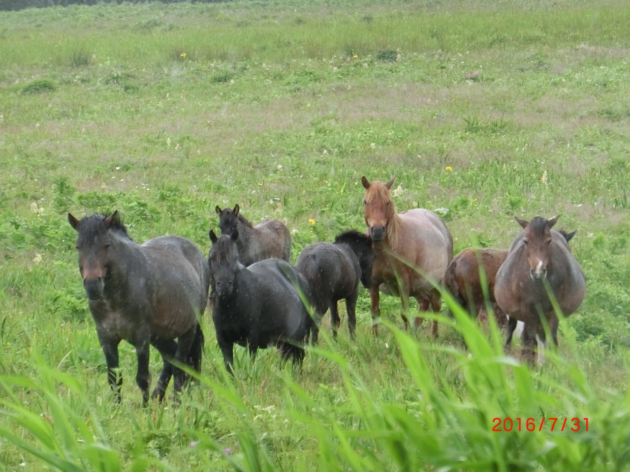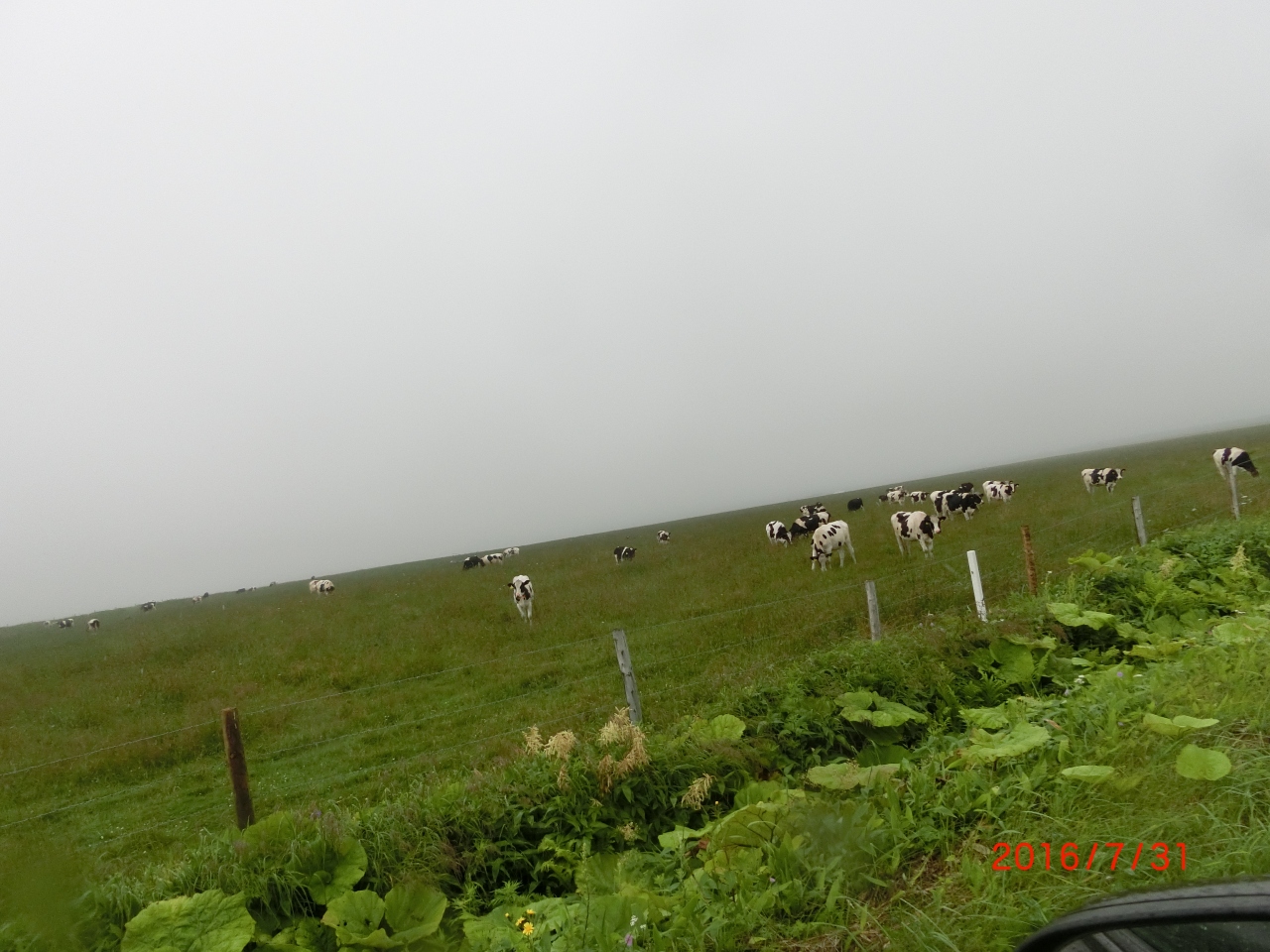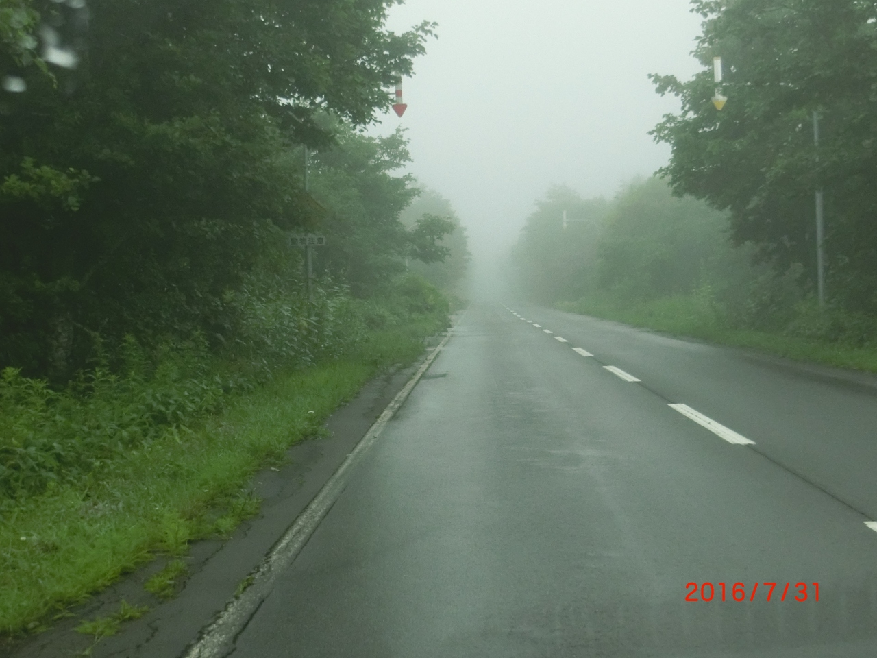 霧と雨でしたが、車も少なく、所々馬が通るので注意の