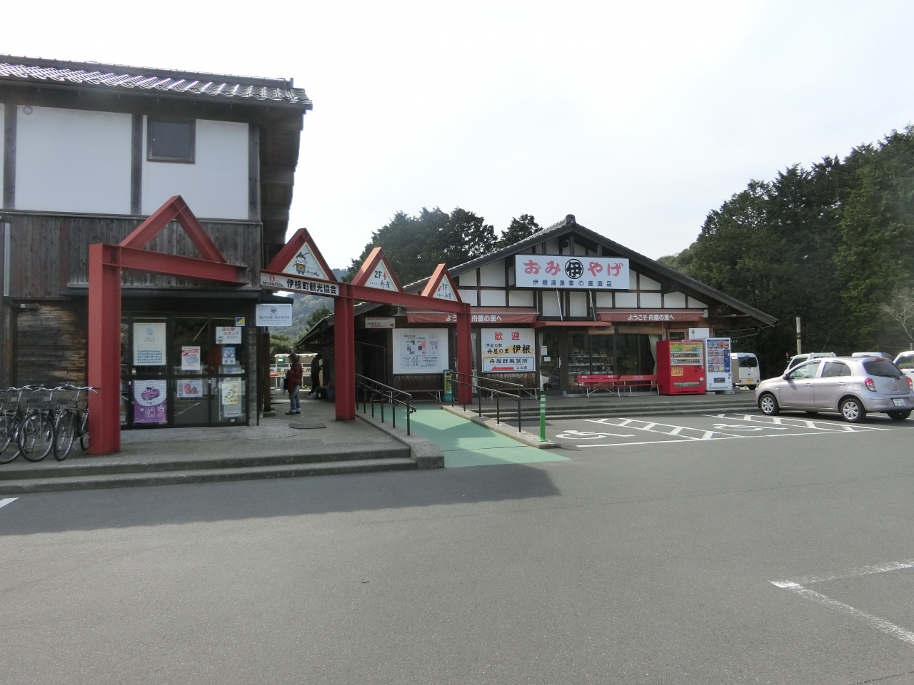 兵四楼から道路を通って道の駅に行き、帰りは急な長い階段を降りて、
