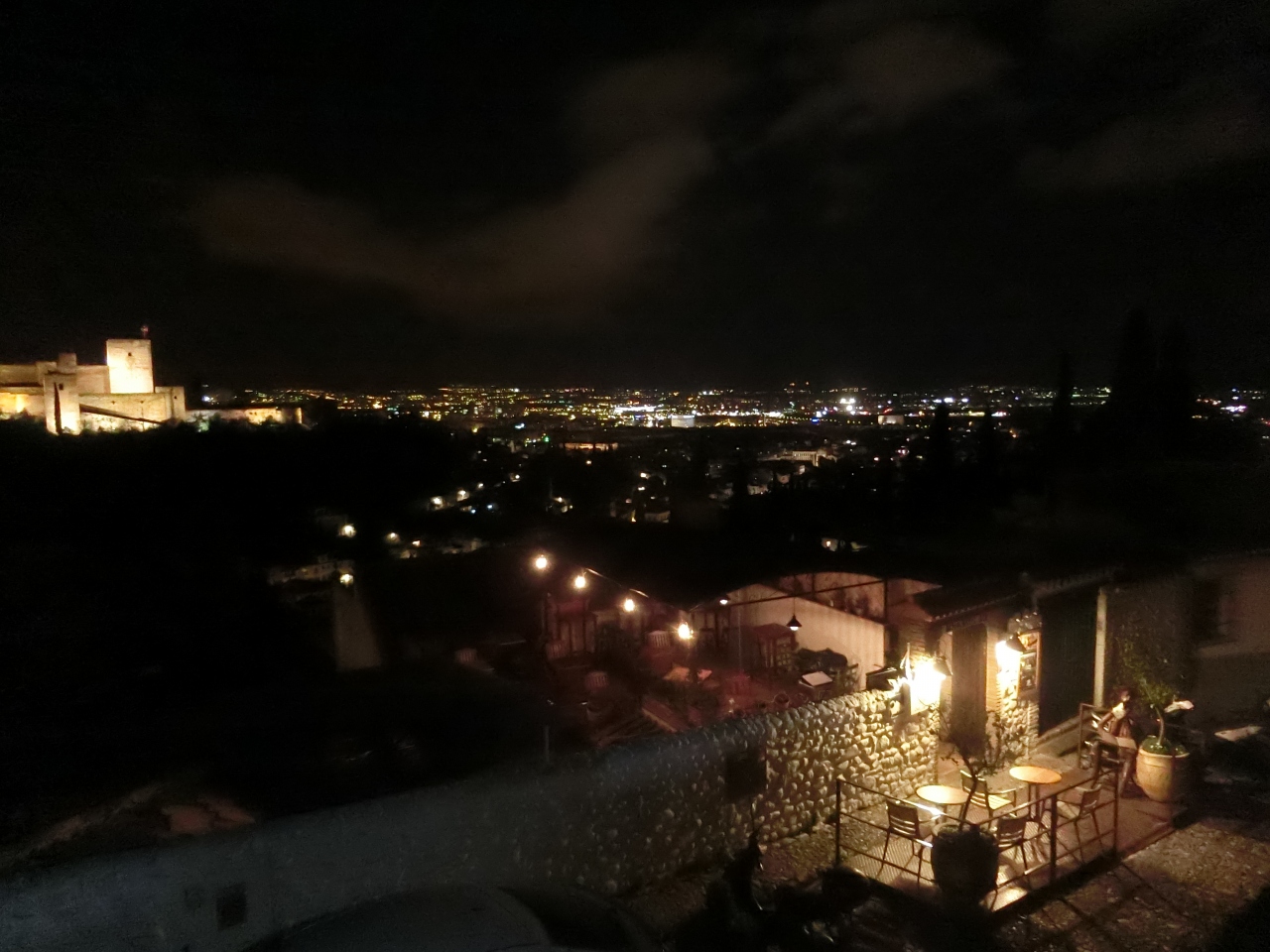 アルバイシンの展望台からのアルハンブラ宮殿のライトアップがいい