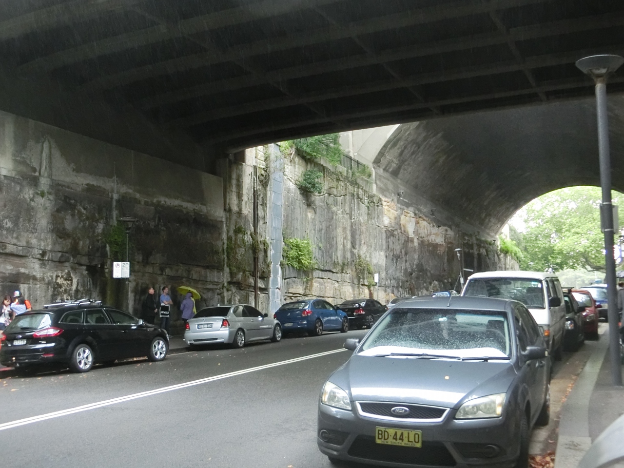 雨の中をオペラハウスとハーバーブリッジの写真を撮り、