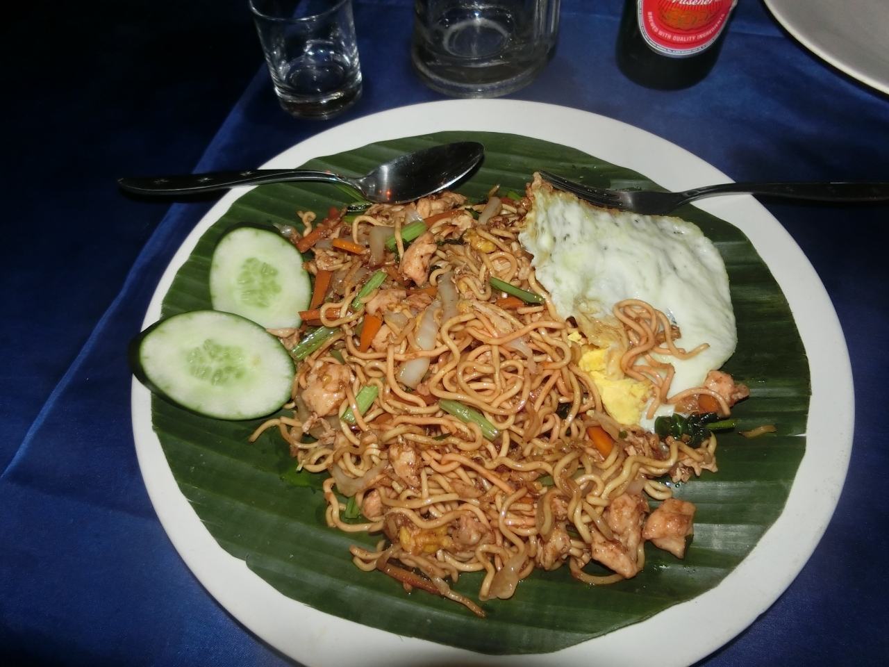 ナシゴレンや焼き鳥風のチキン料理などを食べ、