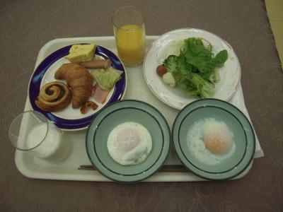夕食は普通ですが、朝食には、目玉焼き、卵焼き、温泉卵と
