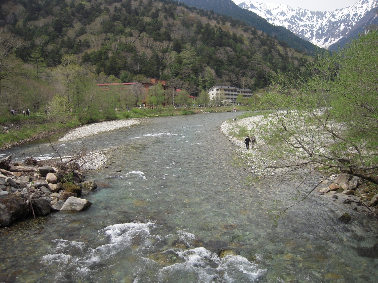 河童橋付近には、ホテルや土産物屋が数軒あり、