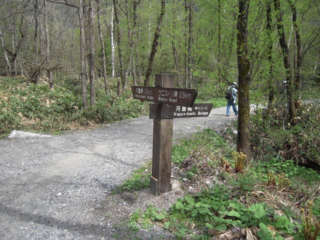 大正池でバスを降り、ホテル横の散歩道を1時前に出発し、河童橋に向かう。