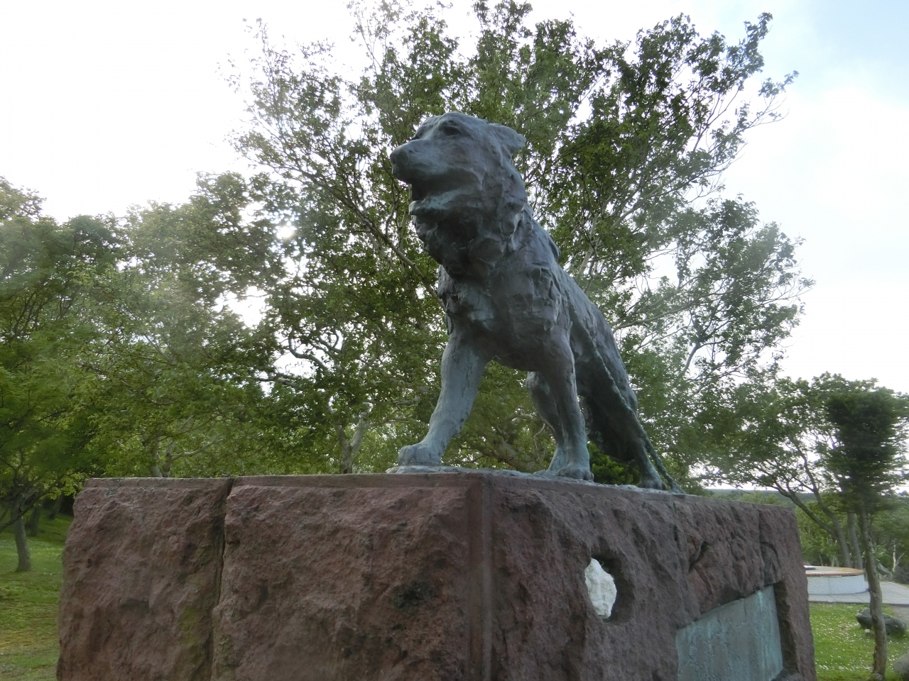 樺太犬の大きな像がありますが、リアルで、本当に強そうです。