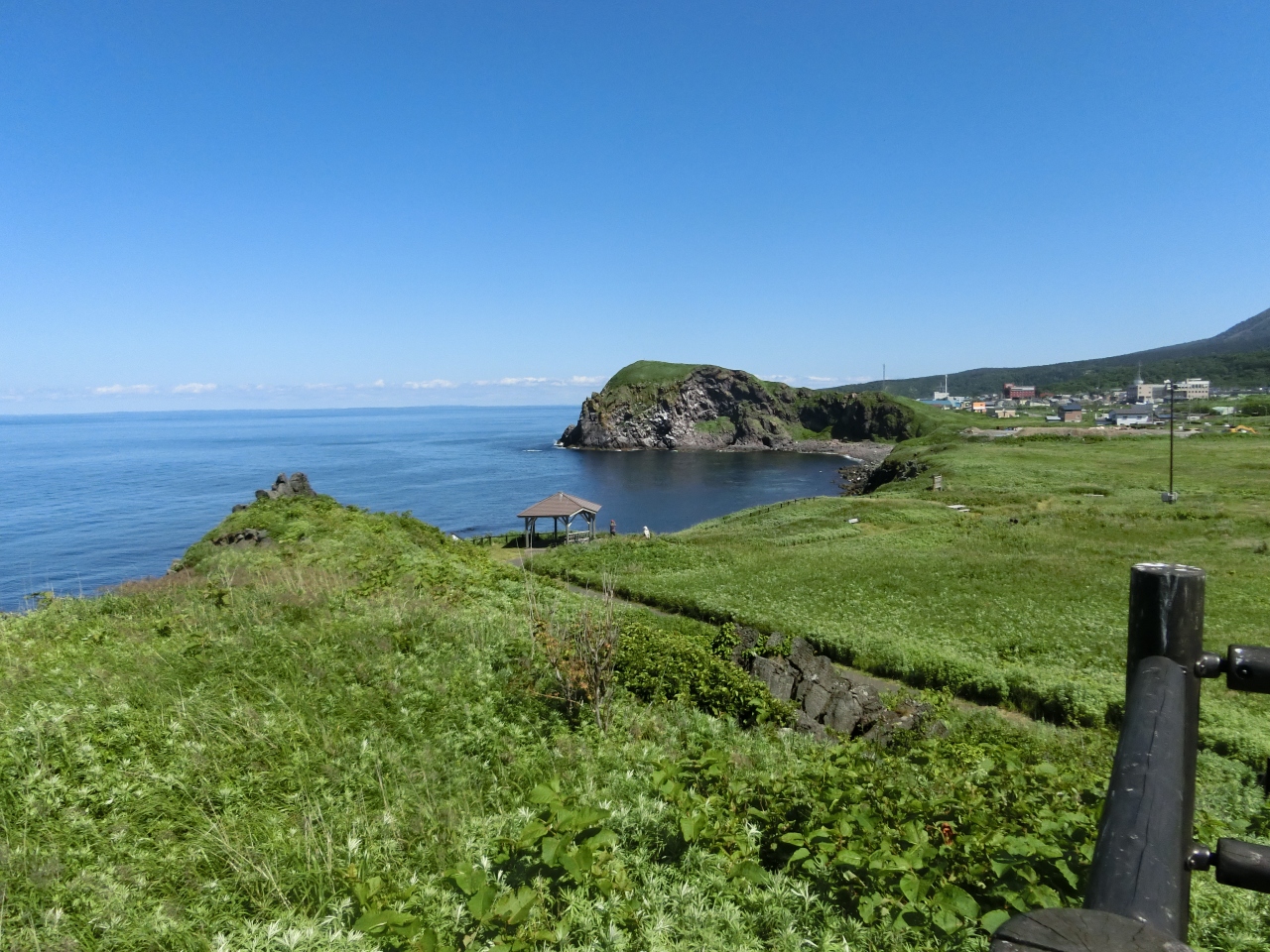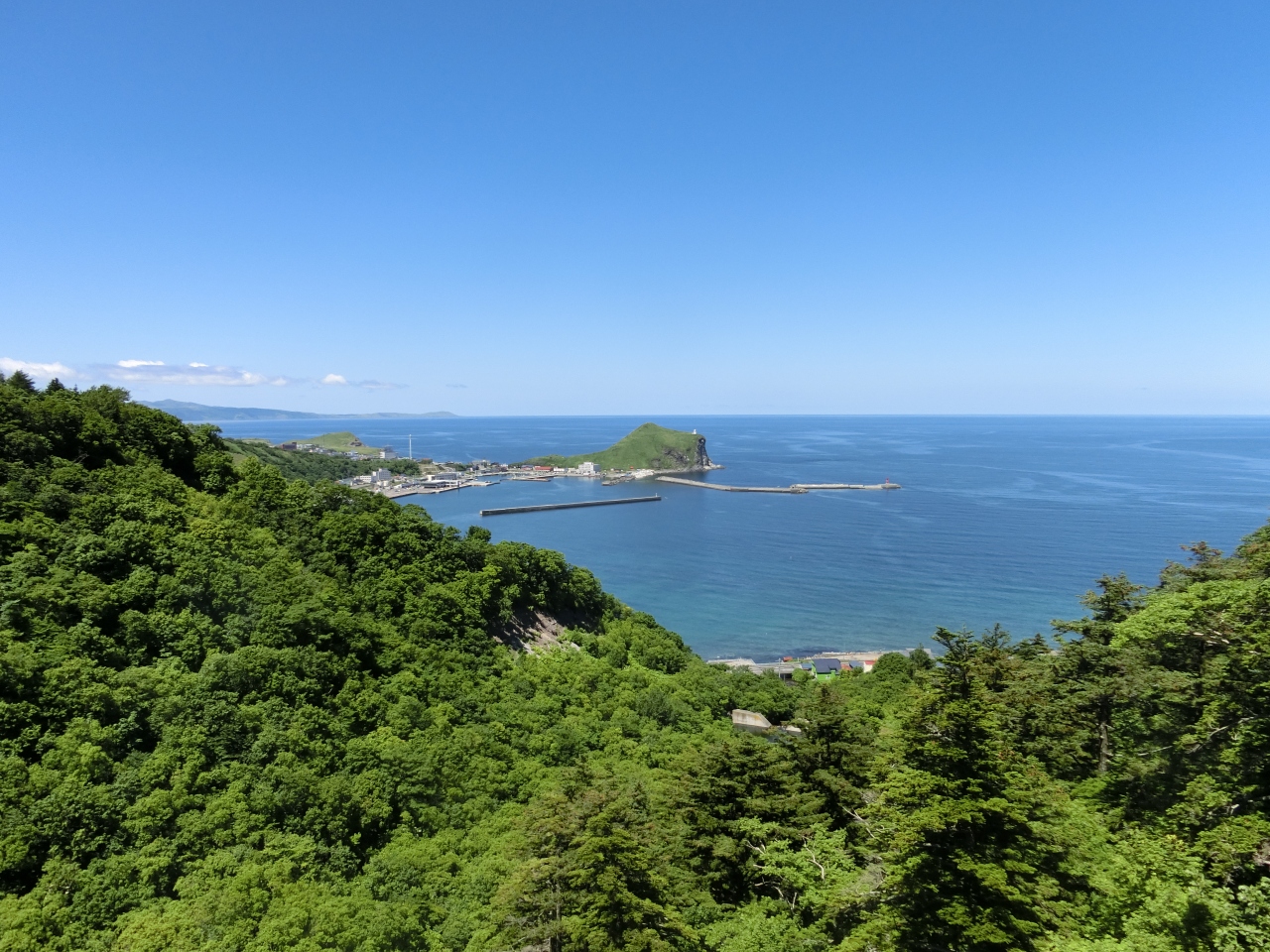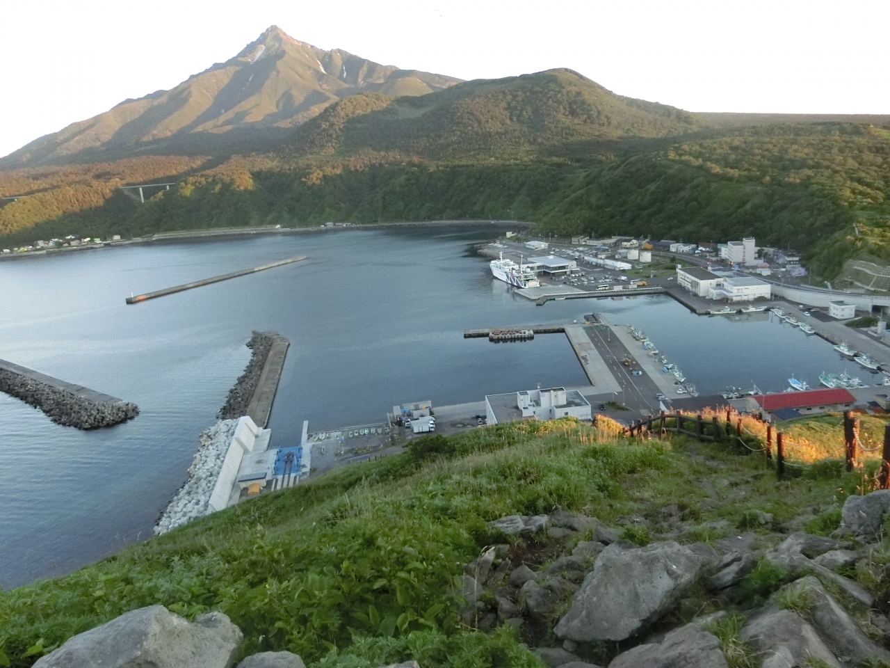 裏にペシ岬、前に鴛泊港があり、