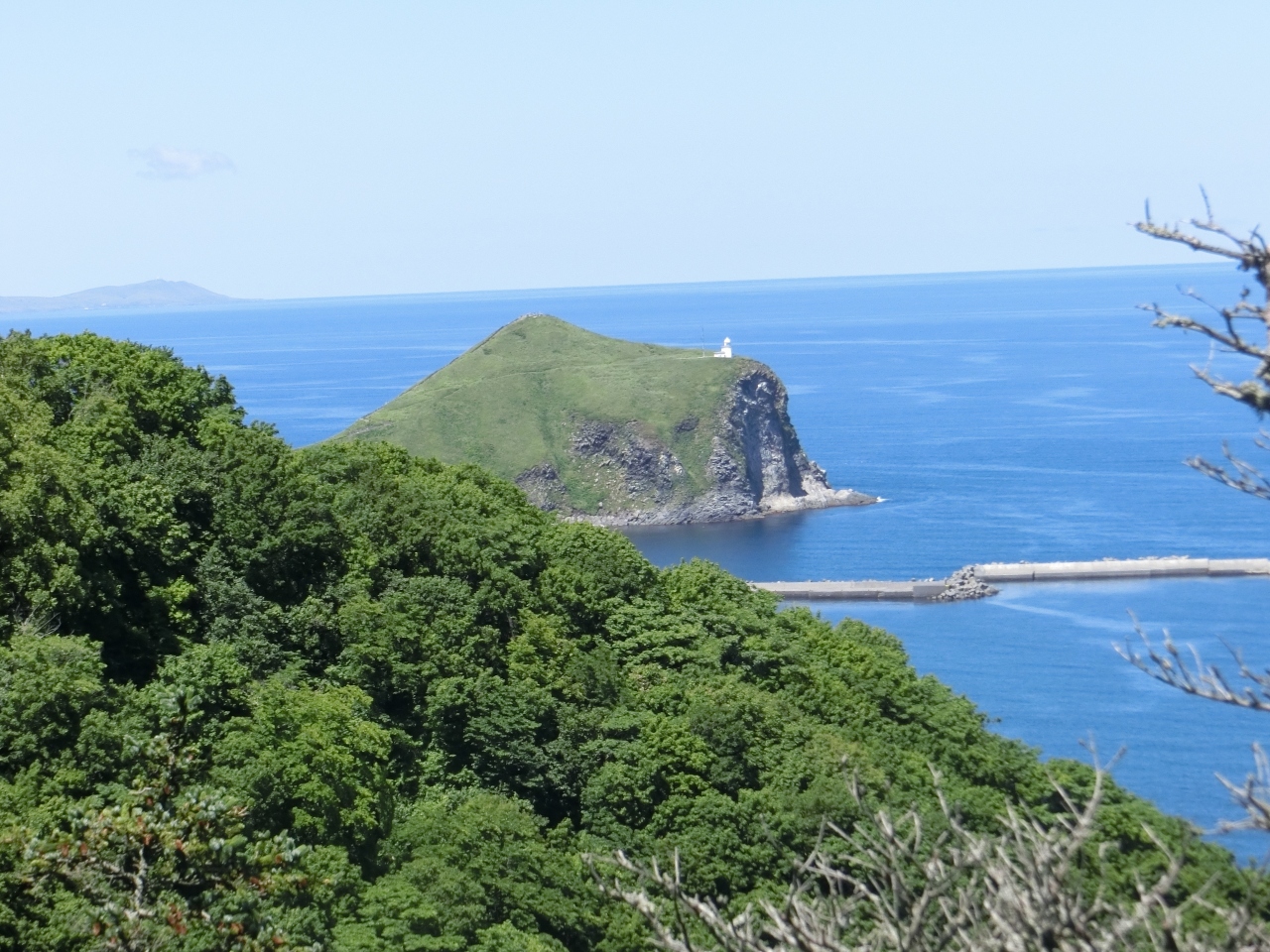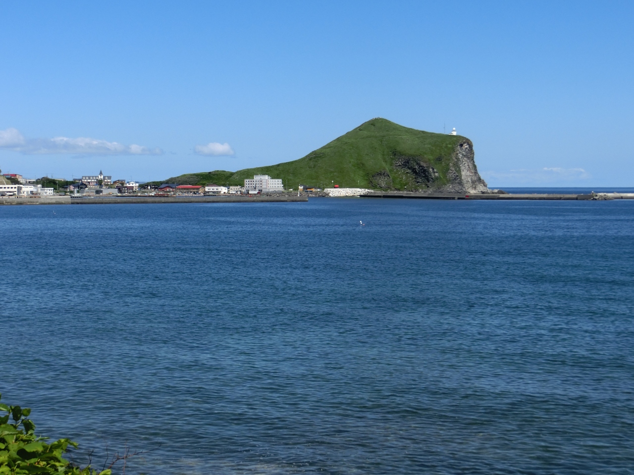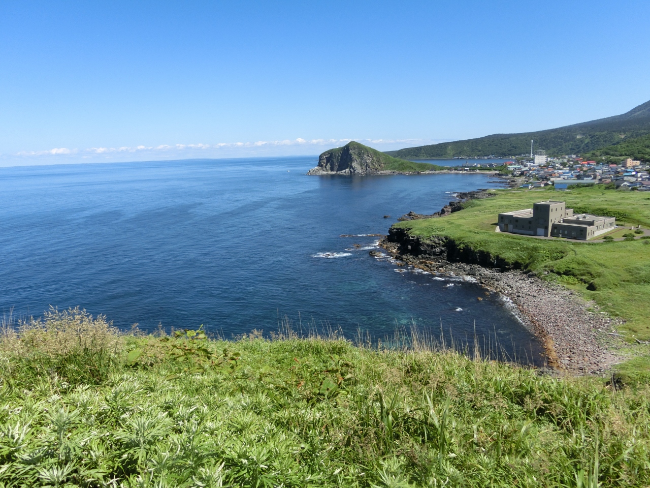 裏にペシ岬、前に鴛泊港があり、