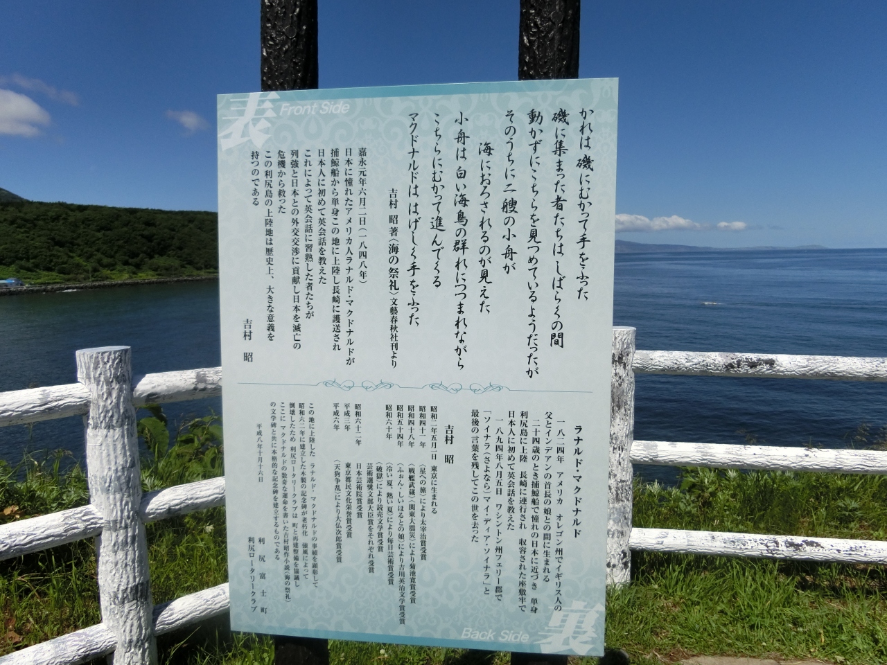 野塚展望台にはラナルド・マクドナルド上陸記念碑がありました。