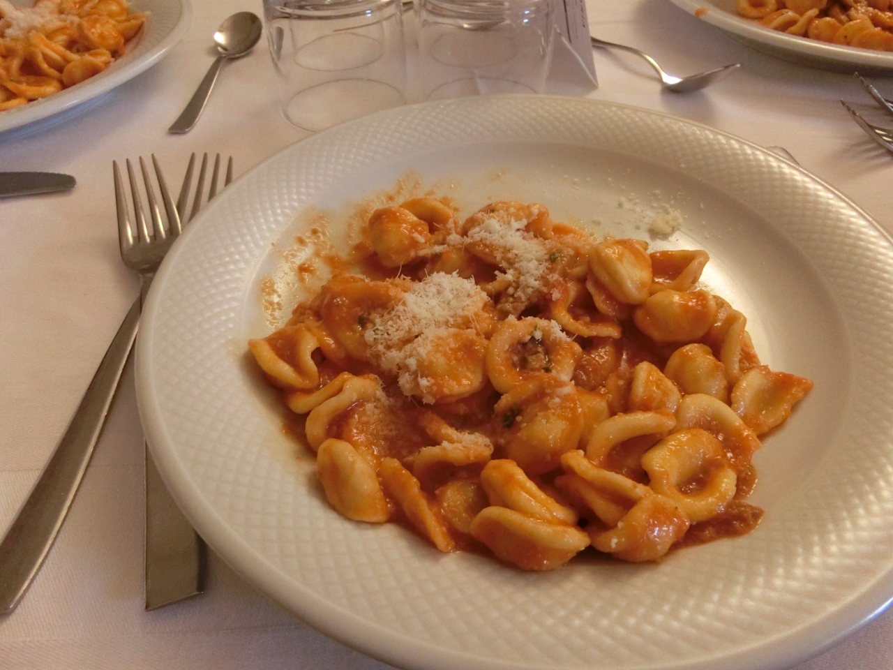 オレキエッテと言う耳型パスタですが、味は普通で、ちょっと辛いです。