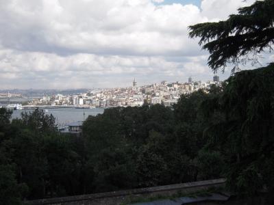 ボスポラス海峡やその向こうにガラタ塔やトプカプ宮殿が