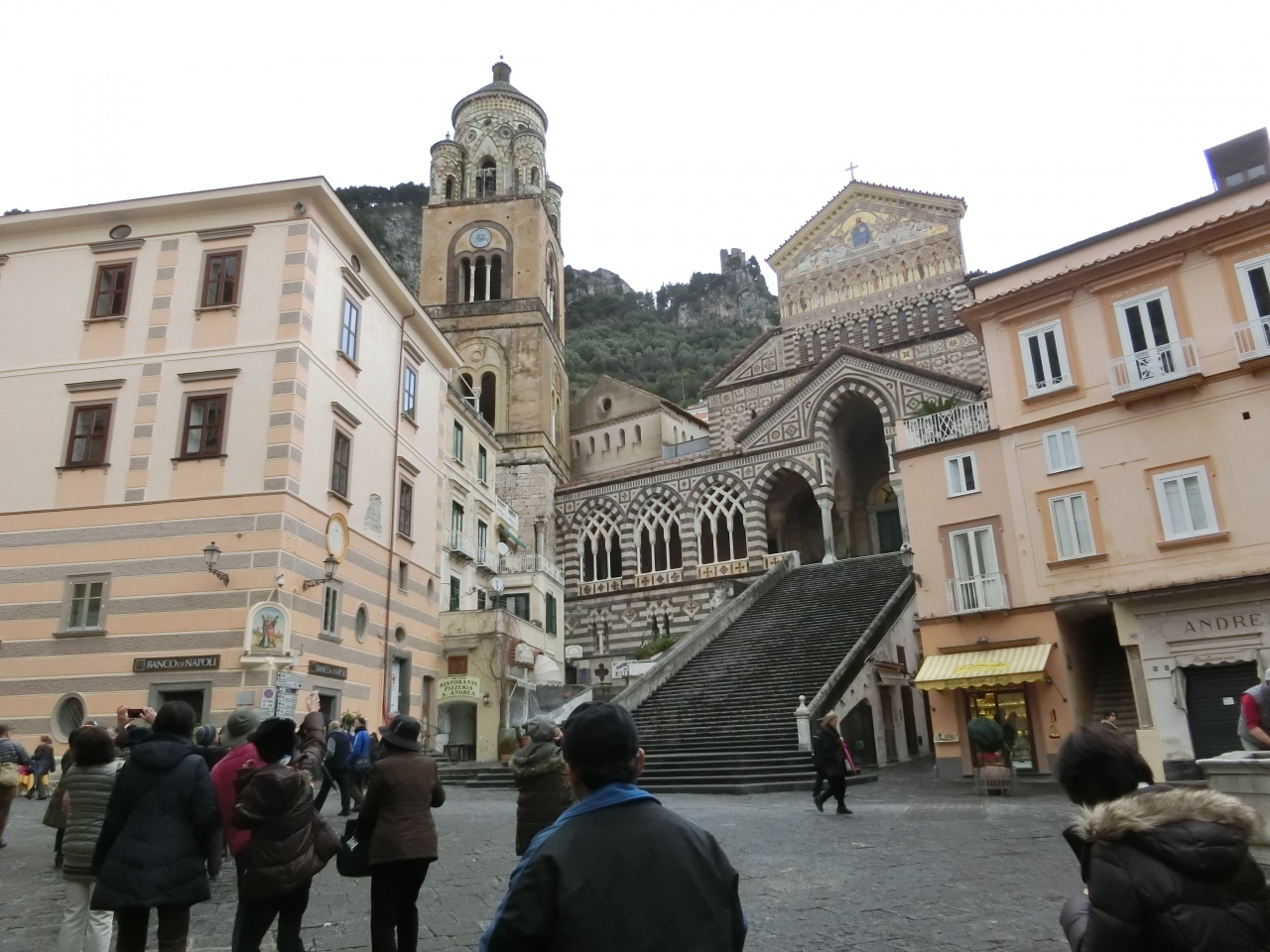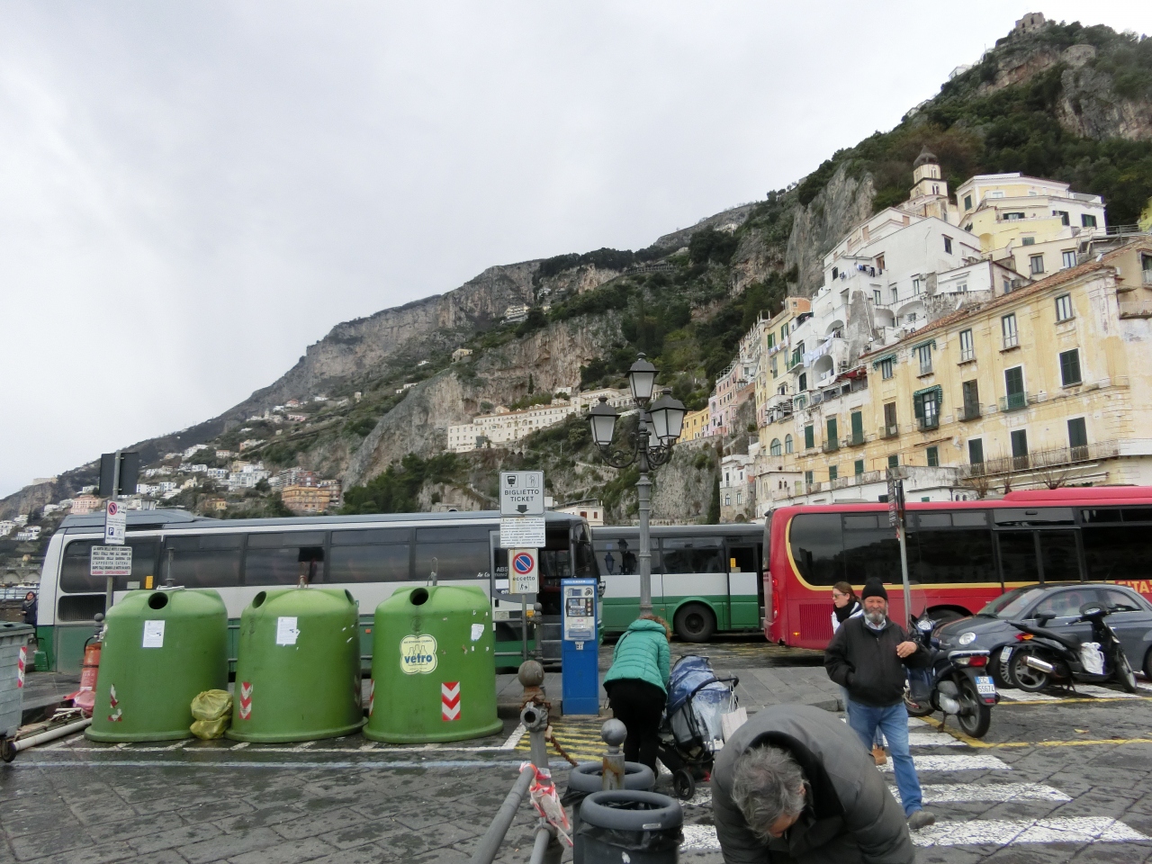 アマルフィ海岸をバスでドライブし、海岸像位の広場にバスを駐車し