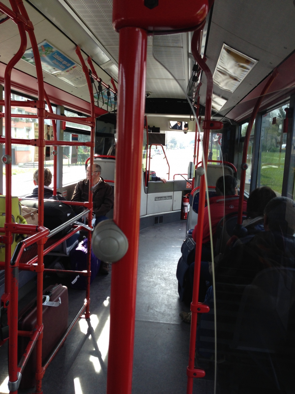 ACTVで行きました。バスの中にバッグ置き場はあり、