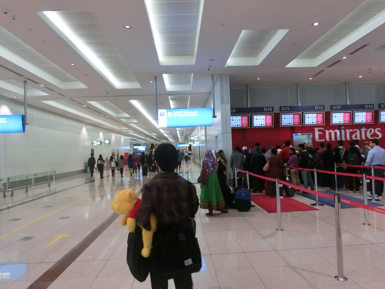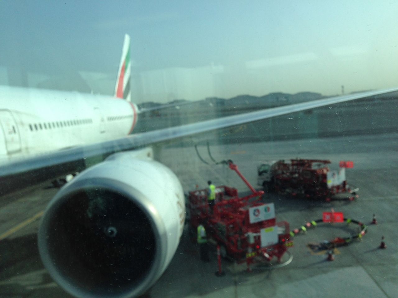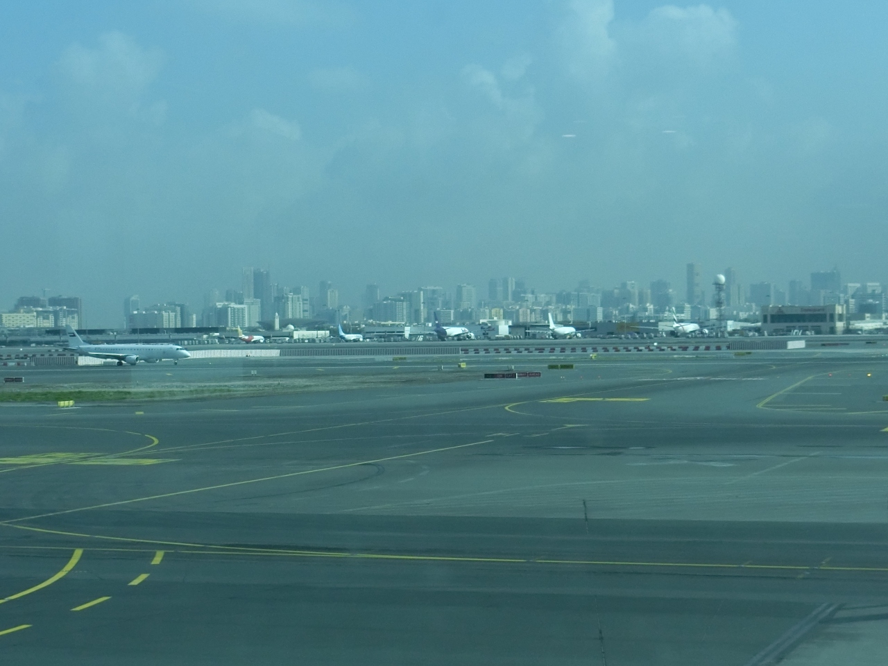 空港の窓ガラスがひどく汚れており、外が見えにくい。