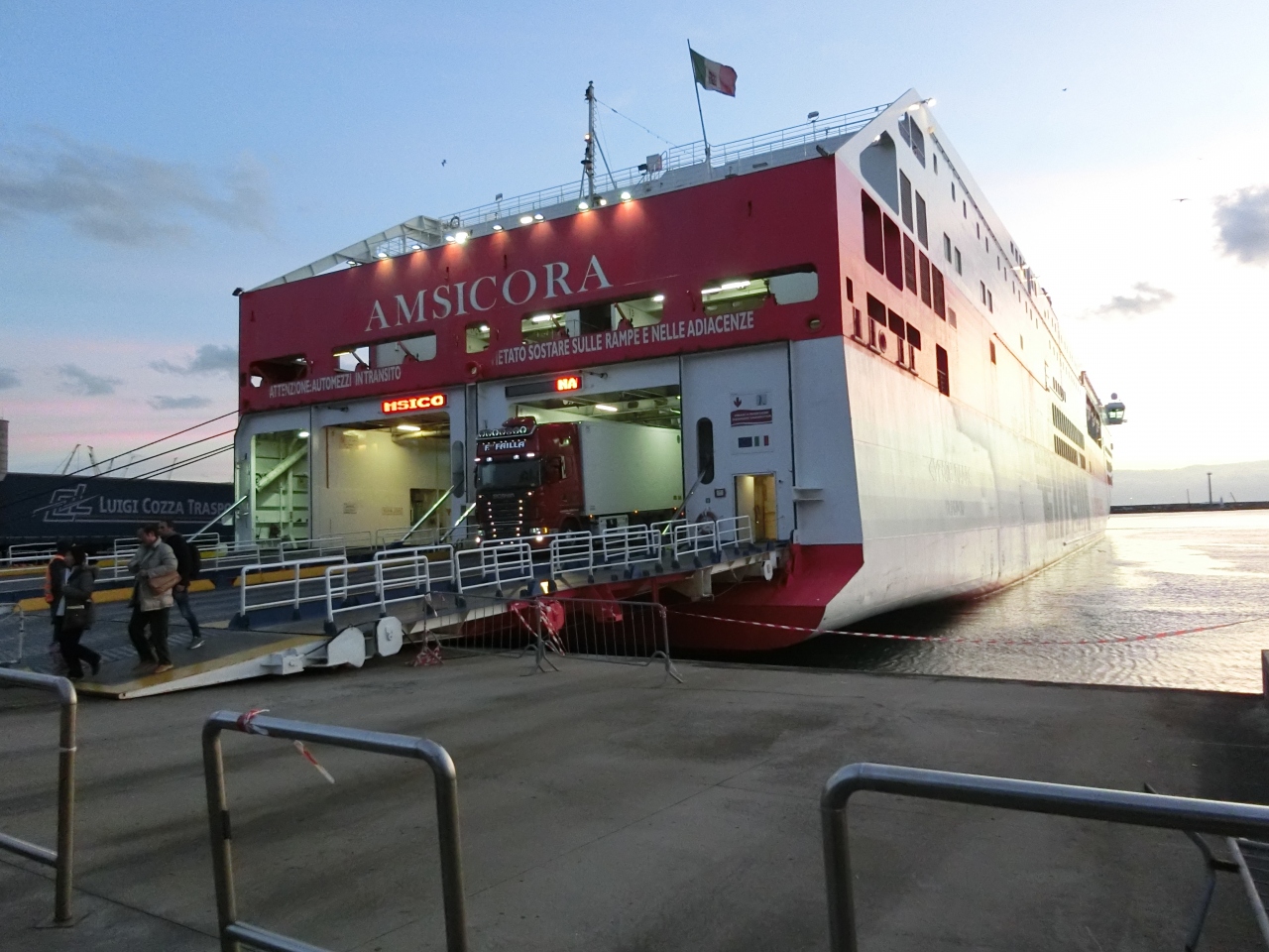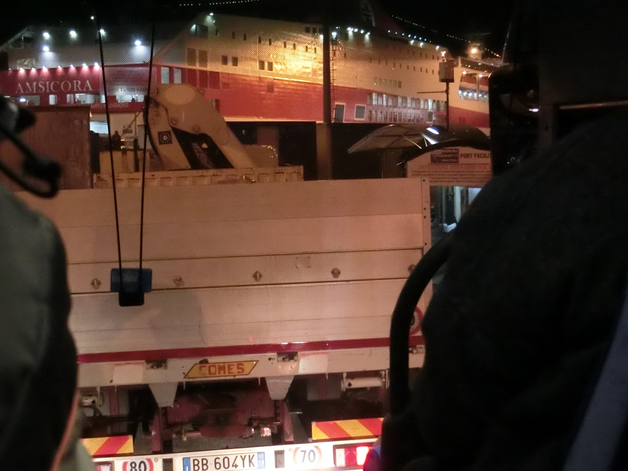 ナポリで夕食を食べた後、夜、フェリーのティレニア号に観光バスごと乗り込みました。