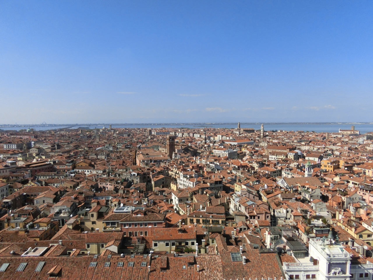 鐘楼からのベネチアの街並みと海、運河の展望は最高です。