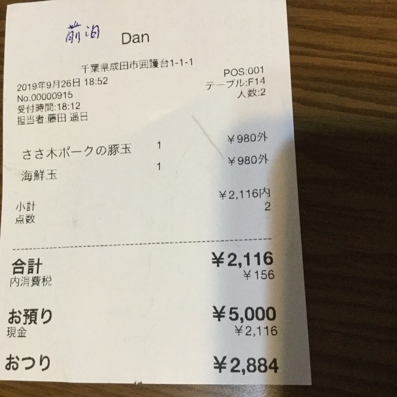 ダブルだが2人で丁度5000円。