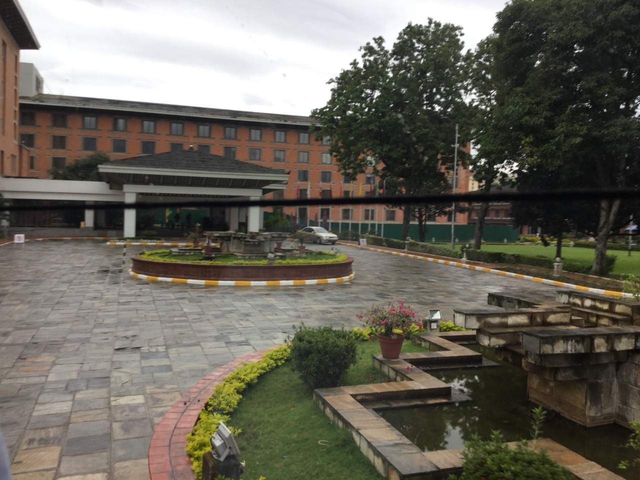クラウンプラザ ホテル カトマンズ ソルティには道路の入口にゲートがあり、