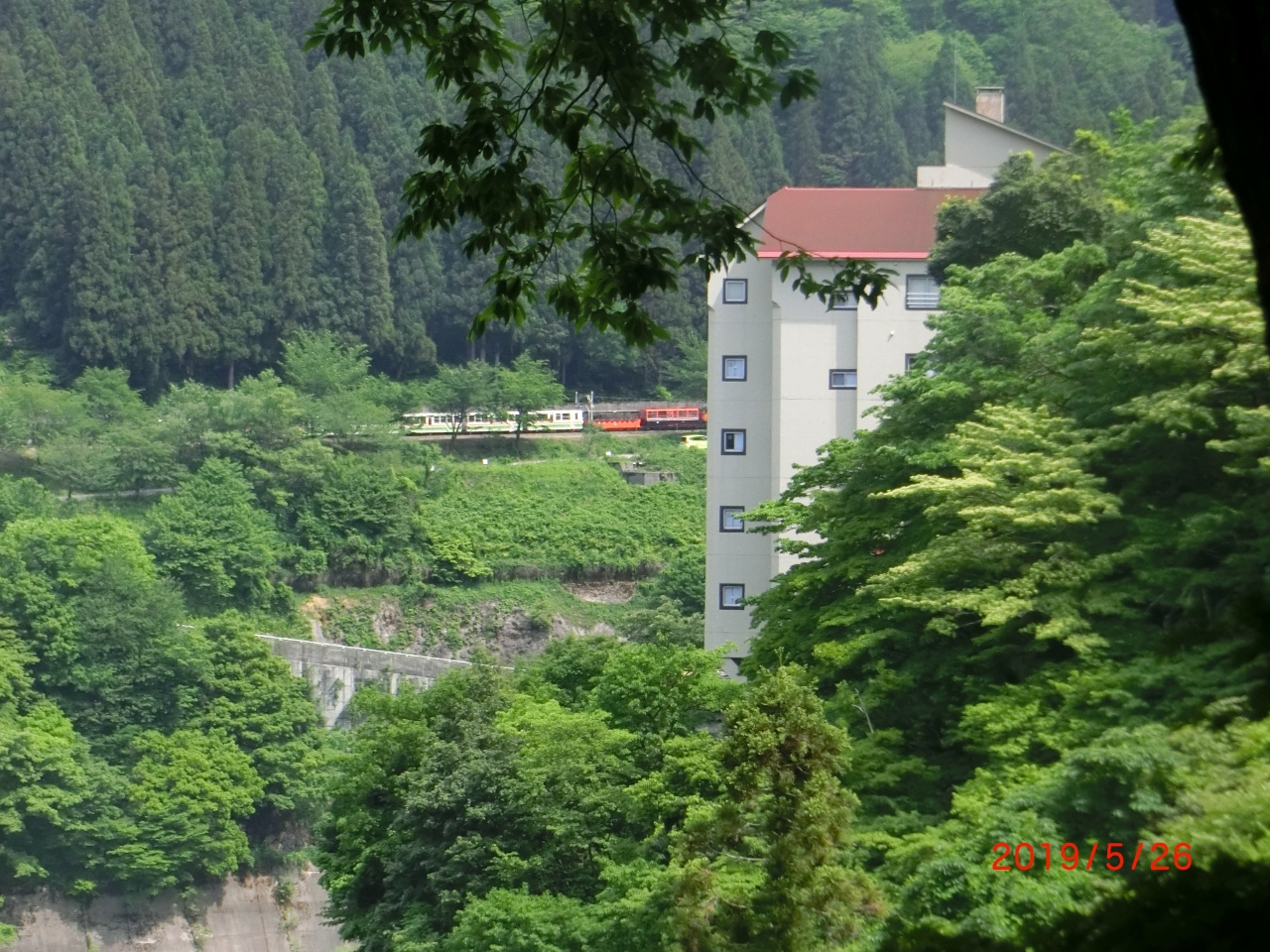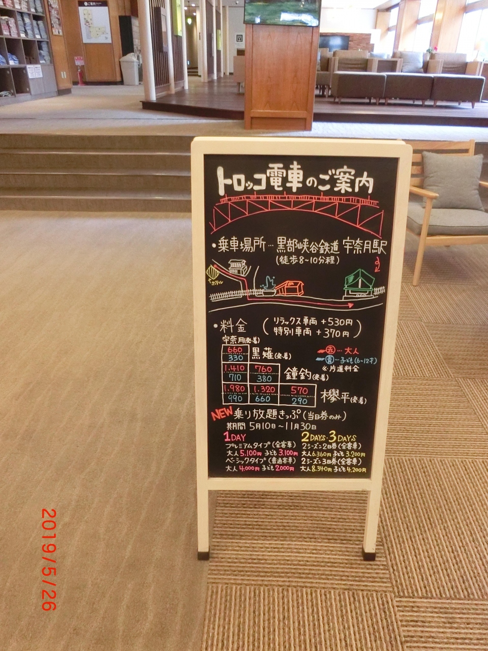 ホテルのロビーにはトロッコ電車の案内がありました。