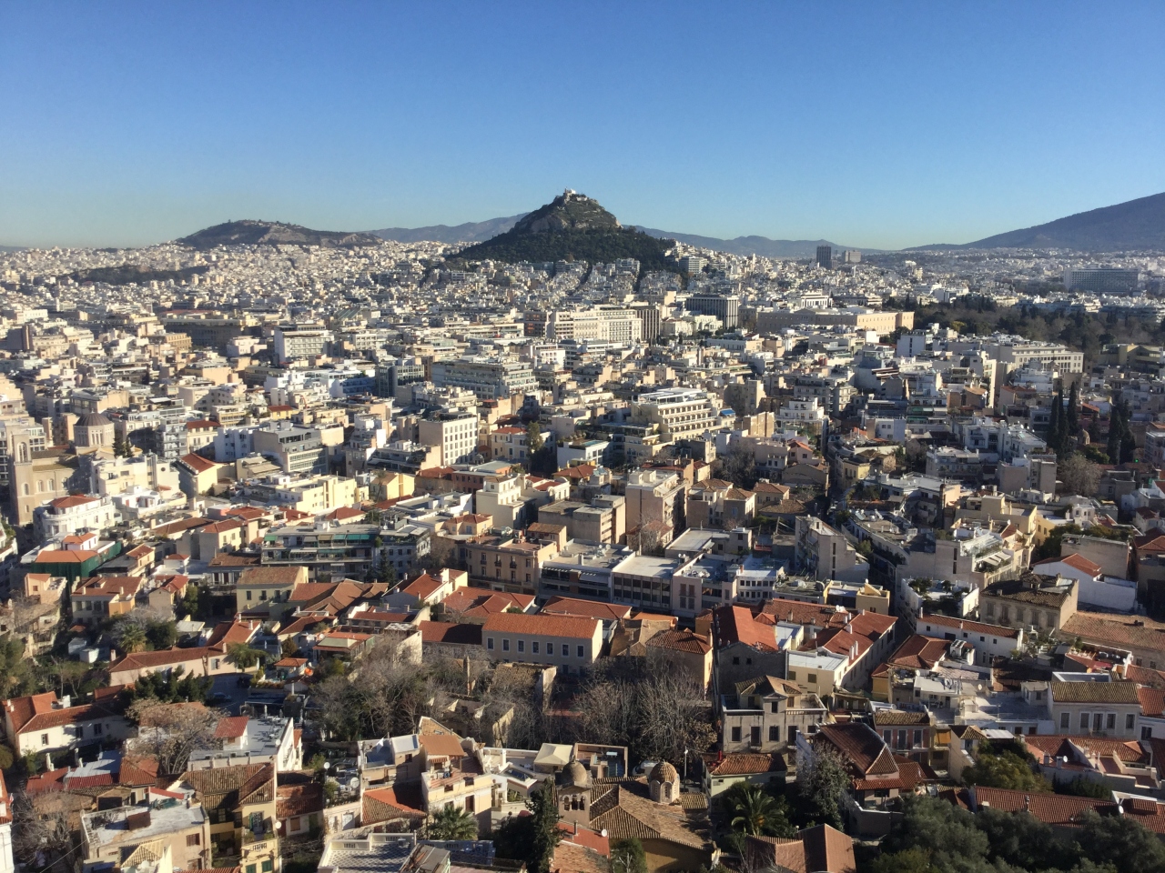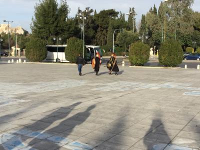 アクロポリスの丘から降りてきてランチを食べて遠いメテオラに行きます。