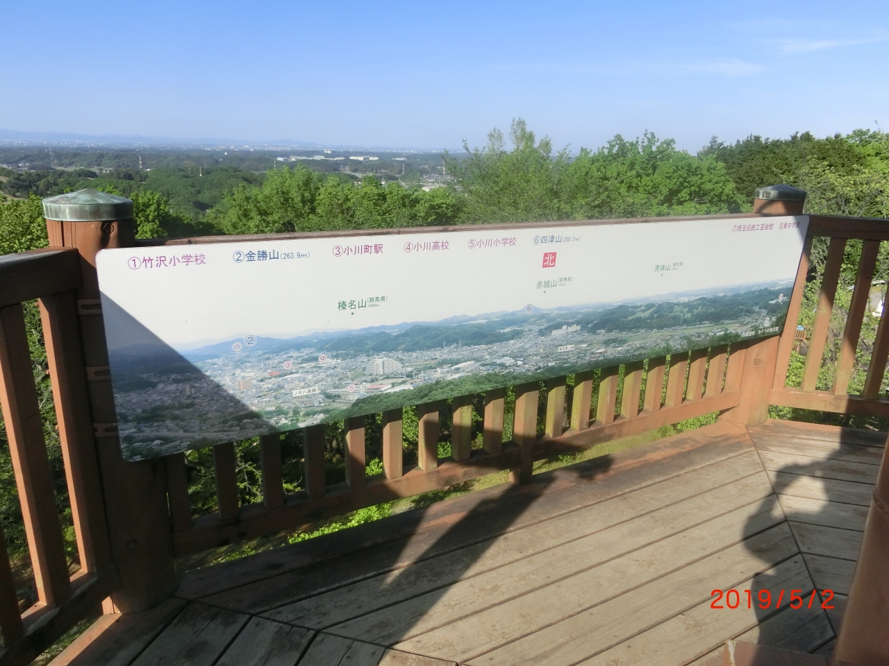 すぐ前の小川町の町並み、小川町駅、鉄道や電車が見えました。