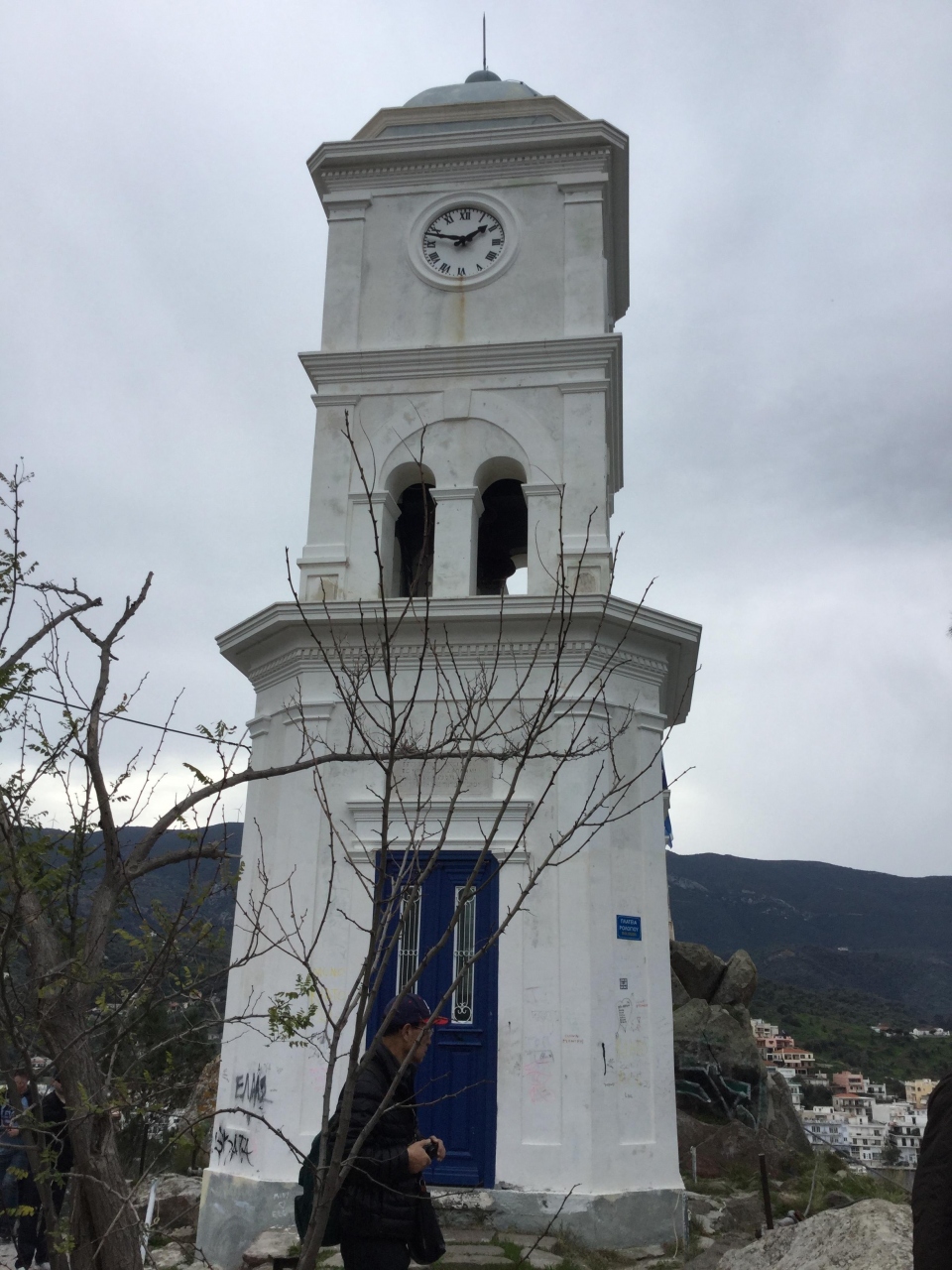 数分で上がれる丘に白く高いクロックタワーがあり町が一望で来た