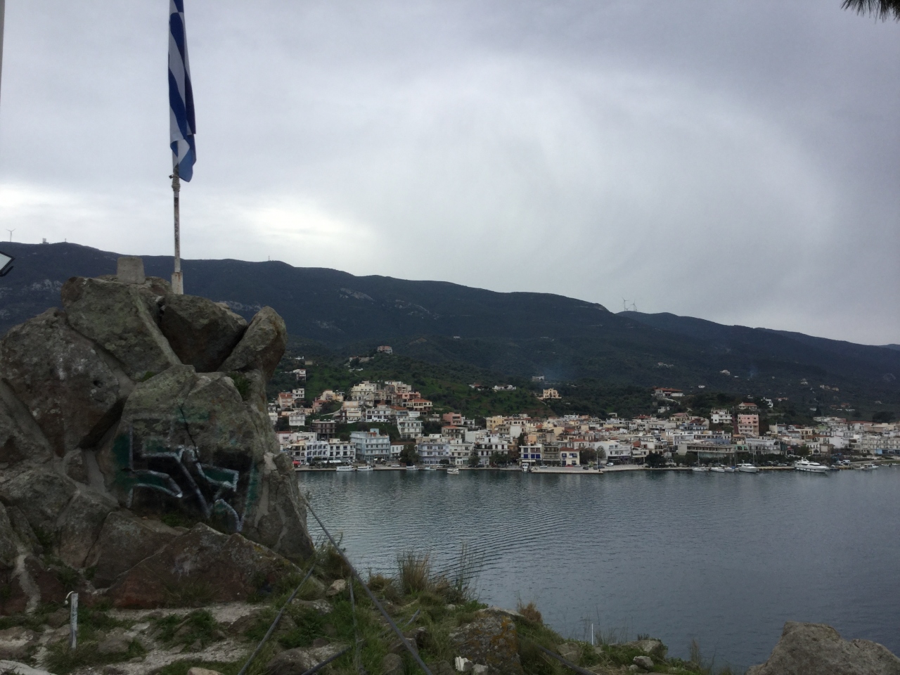 ここからはエーゲ海、サルニコス湾の美し景色か見えます。