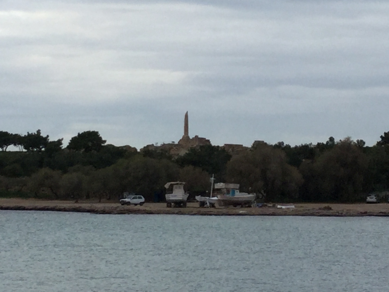 波止場の近くのkolona beachの後ろの丘にある1本の円柱が残った遺跡