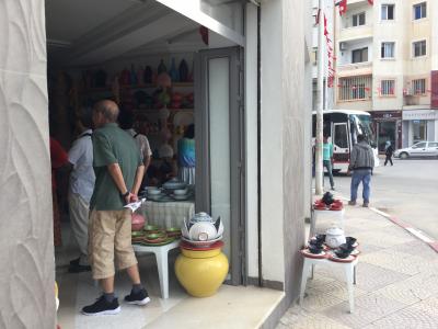貴婦人の手のドアノックがある住宅街を抜けてメディナ商店街に行きます。