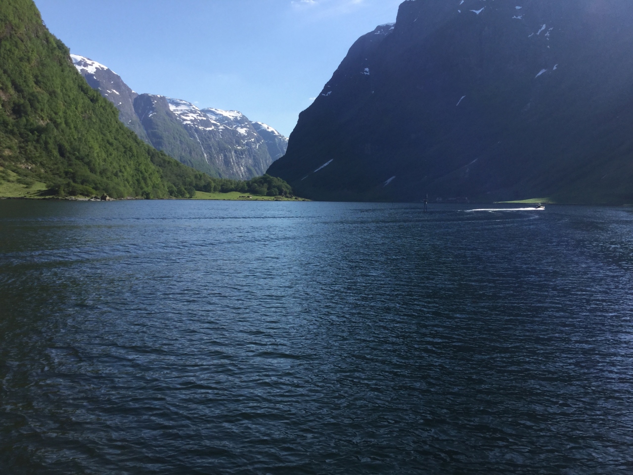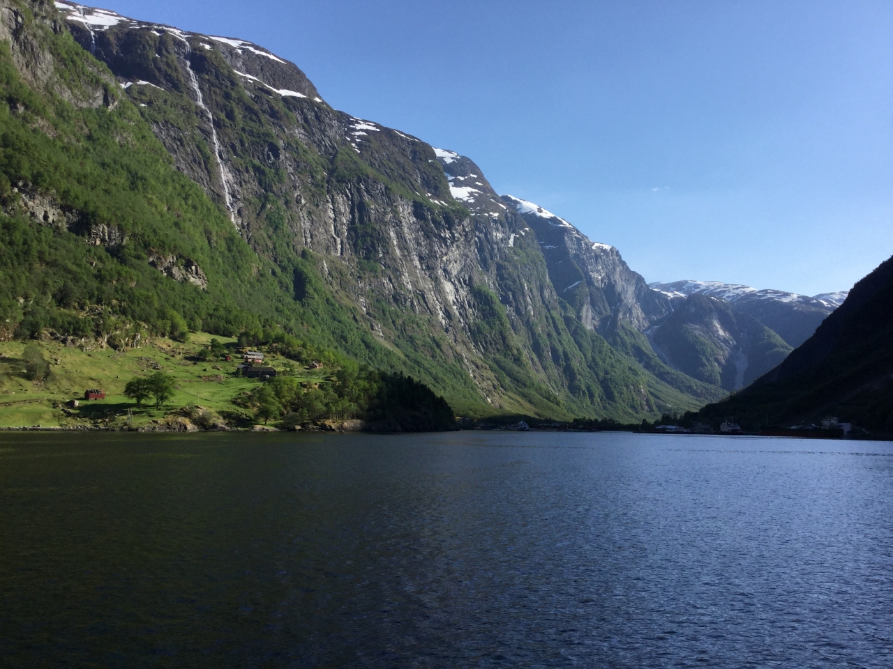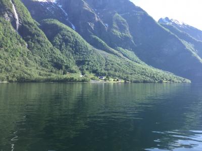 5月のノルウェーは意外と暖かく23度ですが途中の山には残雪もありました。